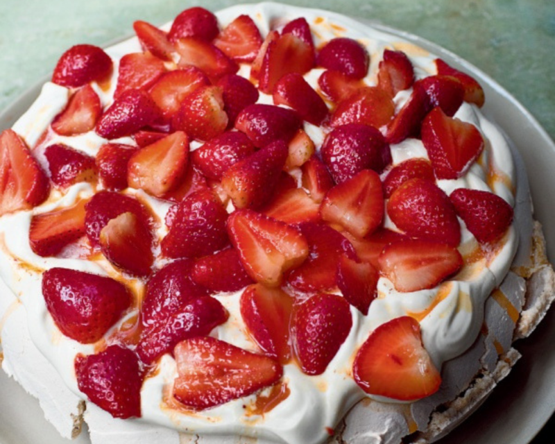 Neozelandesi e australiani combattono per lo scettro di “inventore” di questo dessert. Sembra sia stata inventato dal pasticcere Berth Sachse, ispirato da una ballerina russa – Anna Pavlova – di cui si era innamorato. Questa versione di Pavlova ad opera di Nigella Lawson, tra i volti della cucina britannica più noti al mondo, è composta da uno strato di meringa duro fuori, ma è sorprendentemente morbida all’interno, ricoperta da panna, da una composta di passion fruit, acqua di rose, pepe nero e da tante, tantissime fragole fresche.